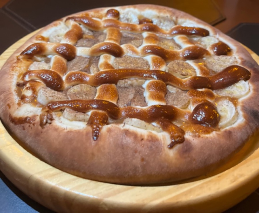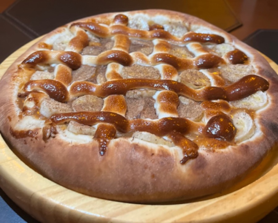 MUSSARELA, BANANA, AÇUCAR, CANELA, CREAM CHEESE E CHOCOLATE BRANCO.