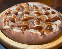 MUSSARELA, CALABRESA E CEBOLA , MOLHO BARBECUE.